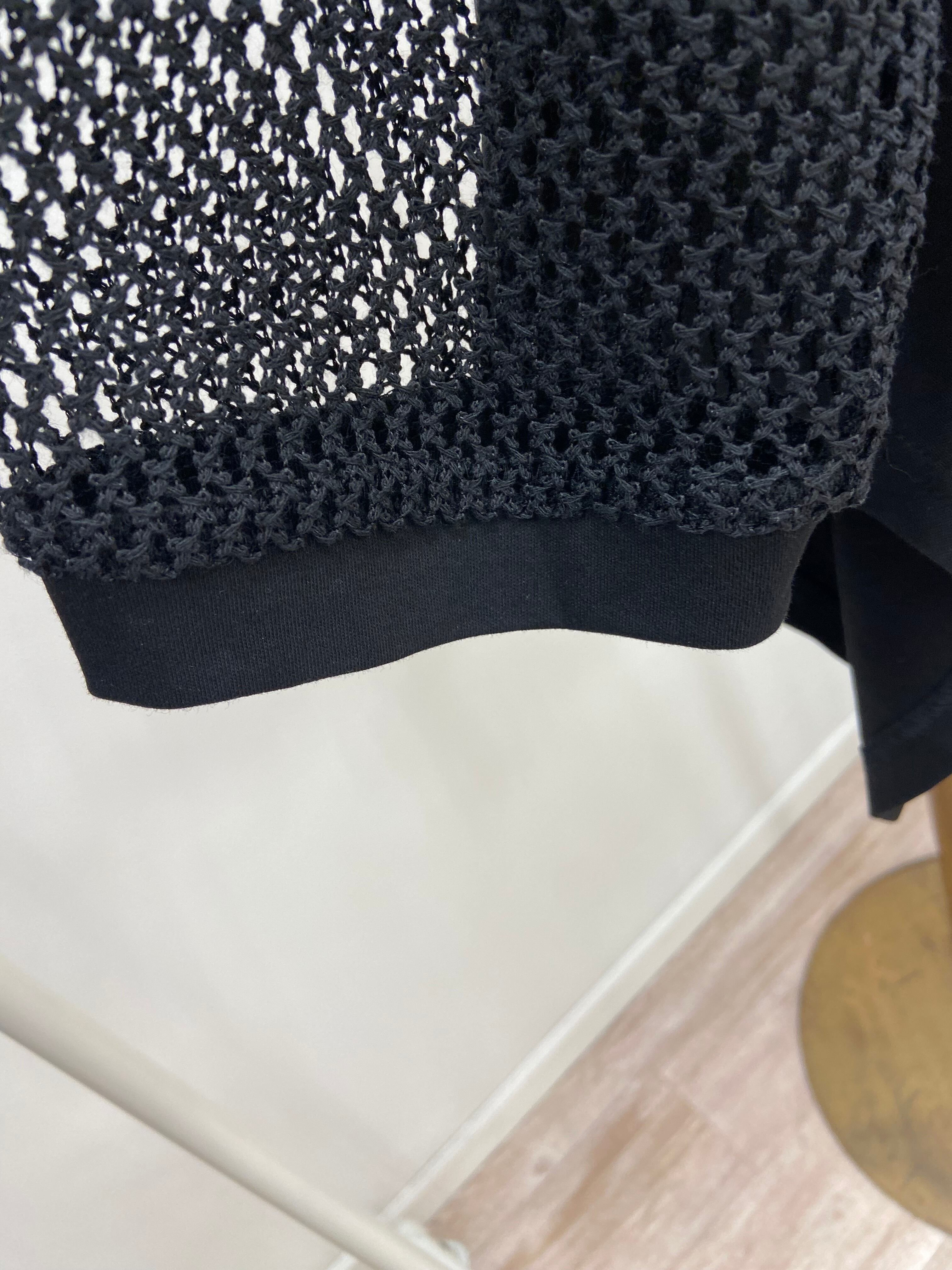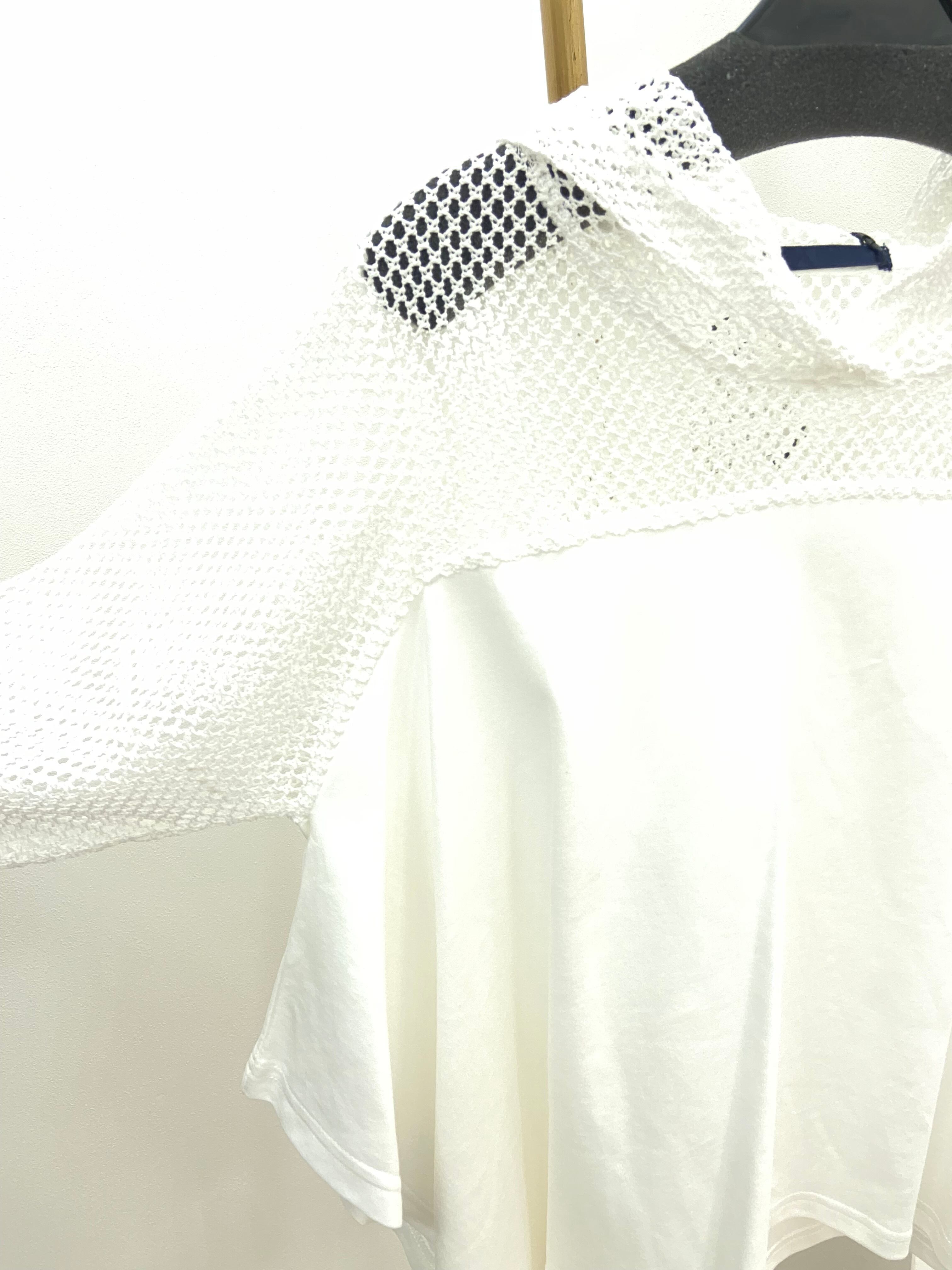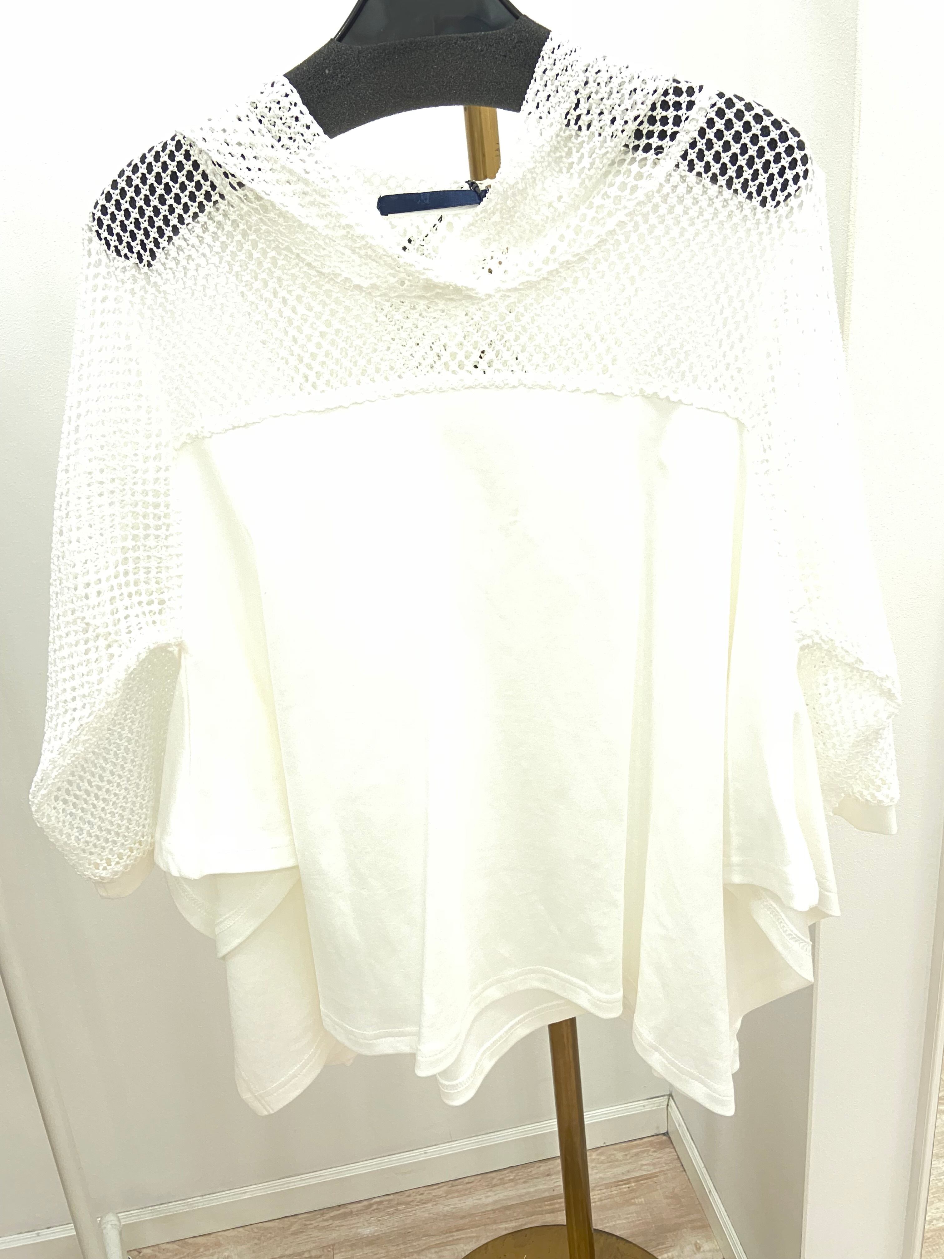 胸元から上(袖、フード、デコルテ周り)がメッシュになっていて、これからのシーズンに1枚でインパクトのあるトップスになっているのでカジュアル合わせなど幅広く着て頂ける1枚です。